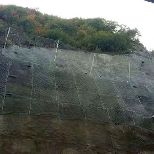 3、边坡防护网还有主动防护网,主动防护网的防护效果比较是好的。将整个山体包裹起来,让巨石只能在有限的活动范围内运动,并且形不成健旺动能。
